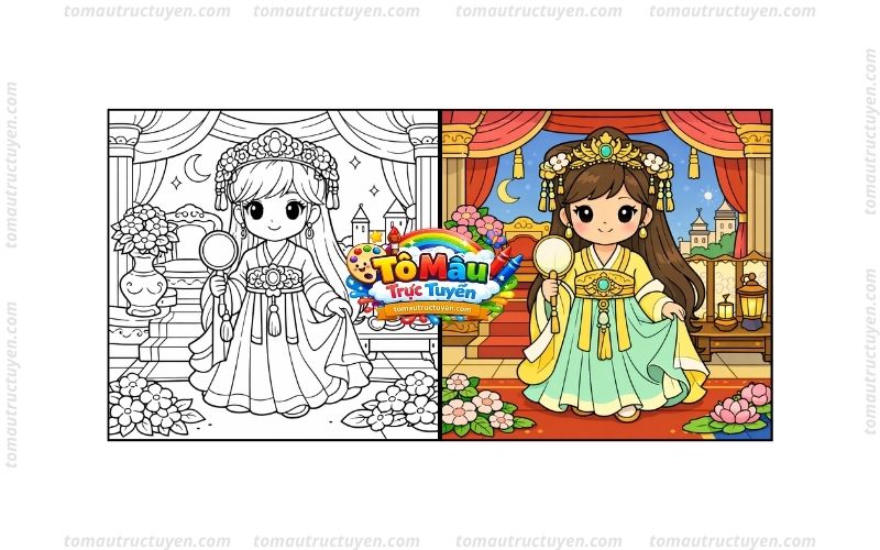 - Lựa chọn mẫu tranh công chúa cổ trang yêu thích từ bộ sưu tập đa dạng, với nhiều phong cách như dễ thương, chibi hoặc truyền thống.